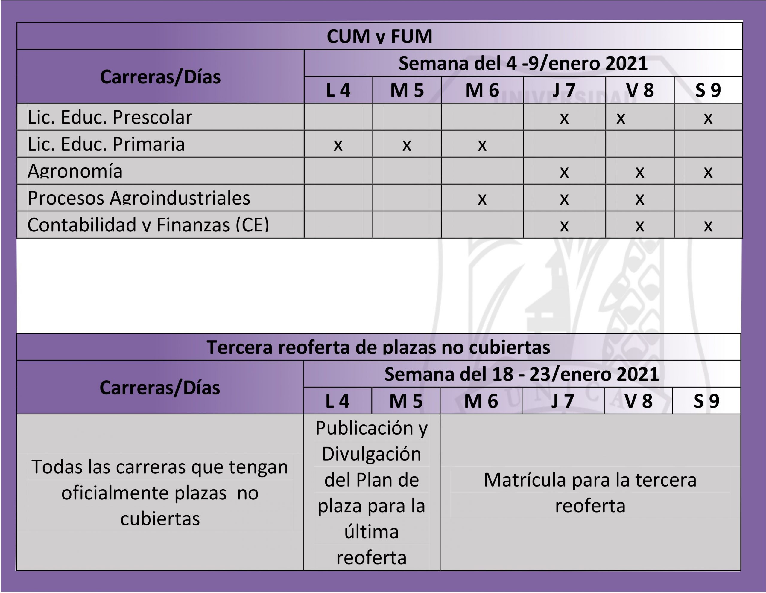 La secretaria general de la UNICA pone a disposición de la comunidad universitaria y avileña las nuevas modificaciones del cronograma de matrícula al nuevo ingreso del curso escolar 2021.