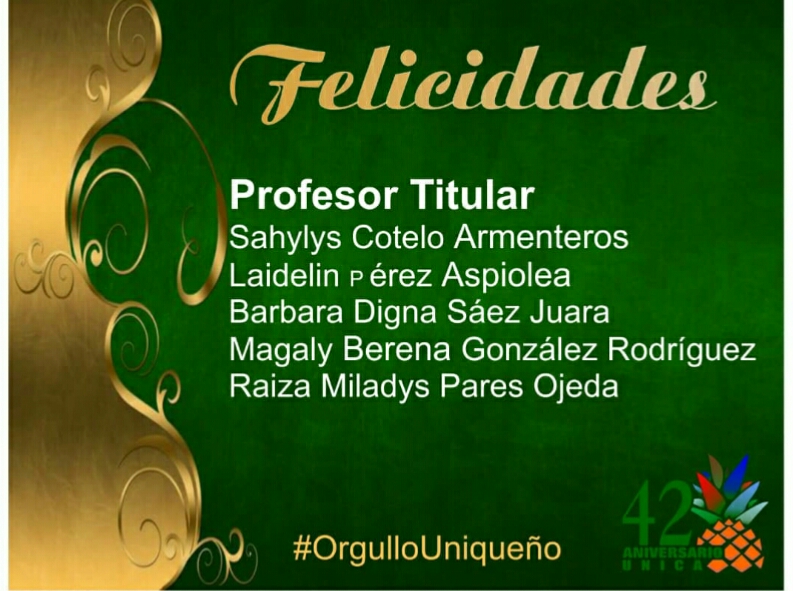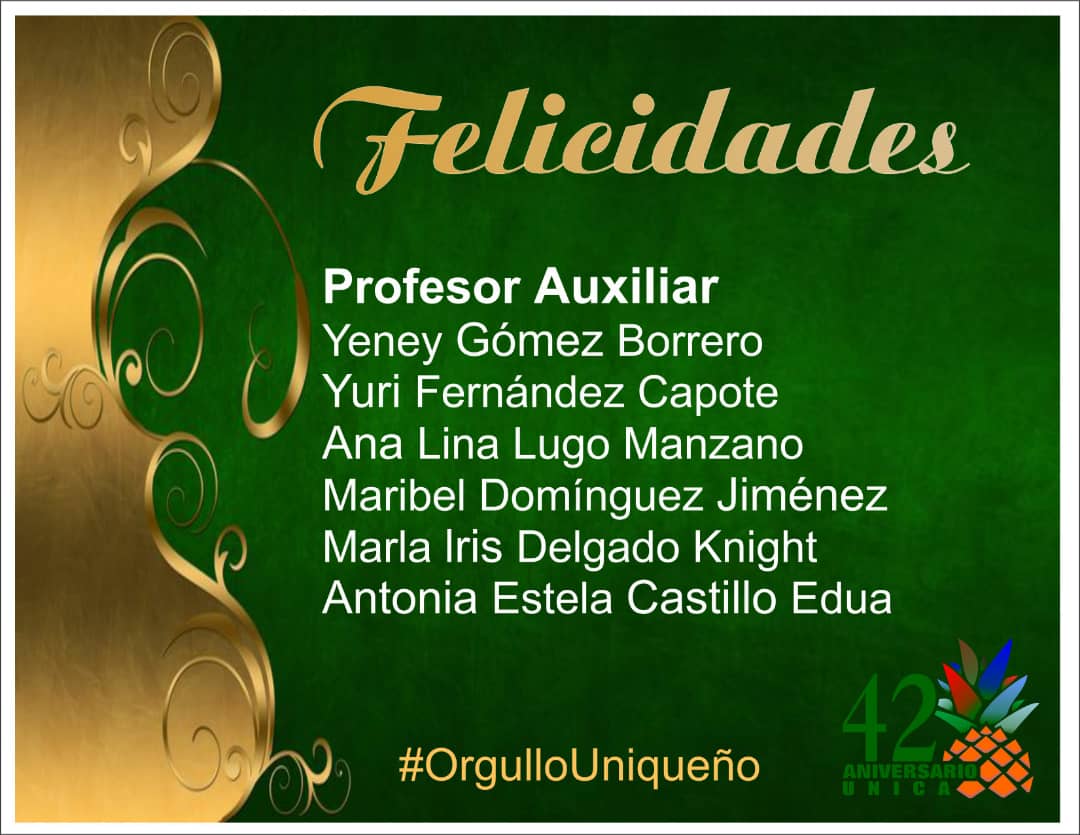 Un nuevo grupo de docentes de la Universidad de Ciego de Ávila recibieron las categorías docentes principales de Profesor Auxiliar y Profesor Titular. En la RS.MS 1049 firmada por el Ministro de Educación Superior DrC José Ramón Saborido Loidi se exponen los nombres de los maestros avileños que reciben la condición después de que sus expedientes fuesen revisados por el tribunal nacional de categorías docentes. Llegue desde la comunidad universitaria avileña la felicitación a los colegas uniqueños.